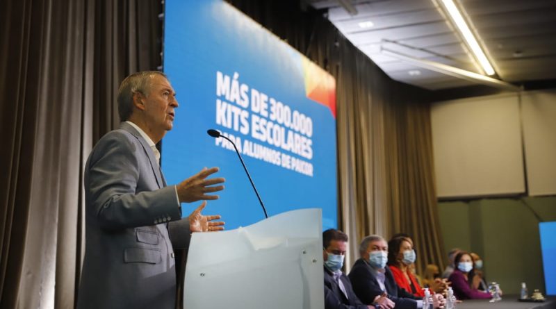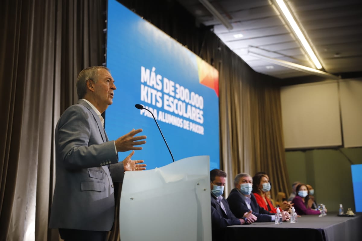 El gobernador Juan Schiaretti, acompañado por integrantes del Gabinete Social, anunció este lunes la entrega de cerca de 350 mil kits escolares para alumnos beneficiarios del Programa de Asistencia Integral de Córdoba (Paicor), en el marco de las acciones tendientes a acompañar a los estudiantes en el regreso a la presencialidad en las escuelas.
