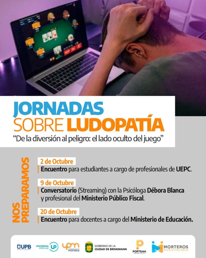 Serán tres charlas dirigidas a estudiantes, docentes y familias. Serán en el mes de octubre. La jornada es organizada por las Universidades Populares de Brinkmann, Porteña y Morteros, junto a sus Municipios Las Universidades Populares de Brinkmann, Porteña y Morteros, junto a sus Municipios, ponen en marcha un ciclo de encuentros para reflexionar sobre el impacto del juego online.