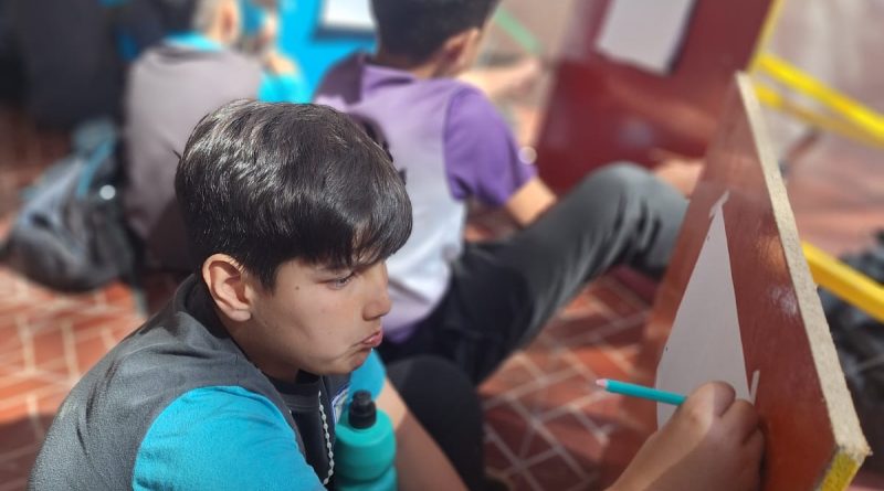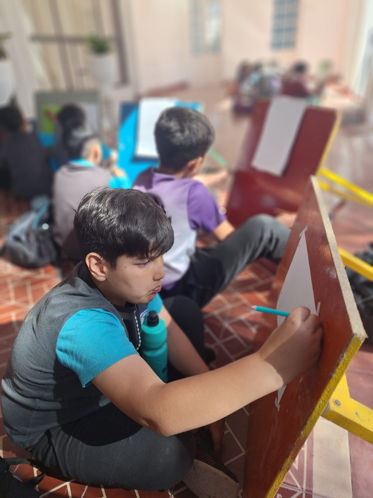 En esta oportunidad, la visita a la Casa Graciela Boero culminó con una colorida actividad artística: los alumnos del Colegio In Aebnit realizaron una intervención pictórica en la galería del espacio, utilizando los atriles del Centro Cultural, en una acción conjunta con la profesora de arte del área.
