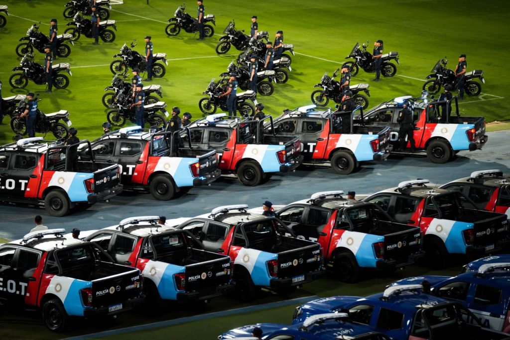 Para su despliegue, el Ministerio de Seguridad incorporó 20 camionetas Nissan Frontier especialmente equipadas con enrejado antivandálico, luces reforzadas y faros móviles para el patrullaje nocturno.