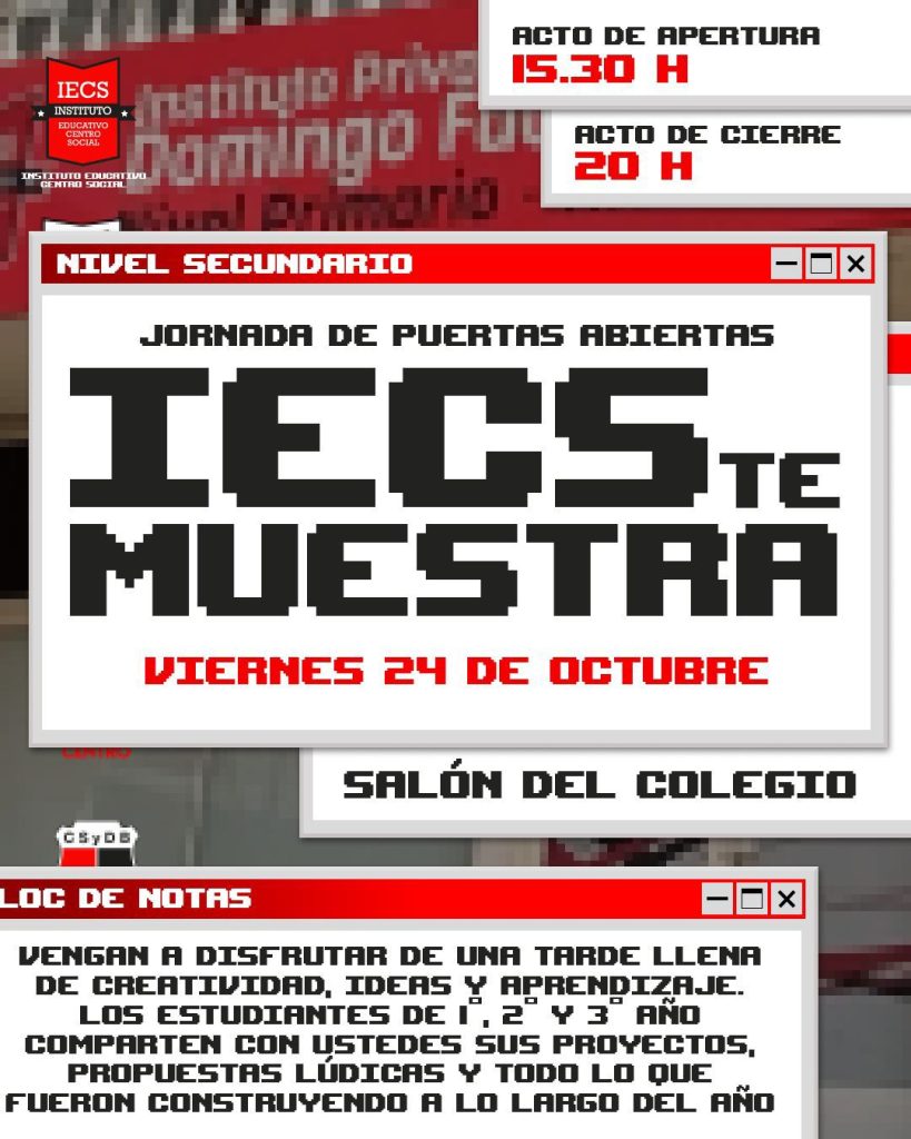 Jornada de puertas abiertas “IECS TE MUESTRA” 🙌 👉Este viernes 24 de octubre desde las 15:30 horas. ¡El Nivel Secundario