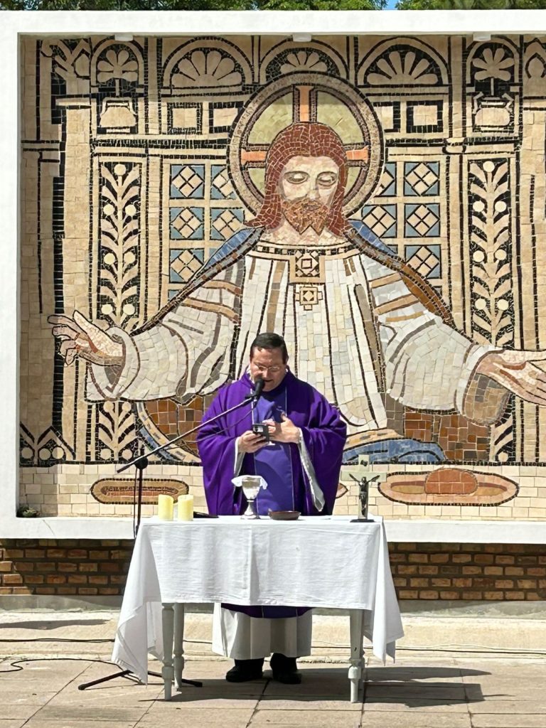 Este domingo por la mañana, en el Cementerio Jardín del Oeste de Morteros, se celebró la misa por el Día de los Fieles Difuntos, ocasión en la que también se bendijo el nuevo mosaico “Jesús Eucarístico”, una obra realizada por los alumnos del Taller ExpresarArte, coordinados por Nancy Giacomelli de Porporato.