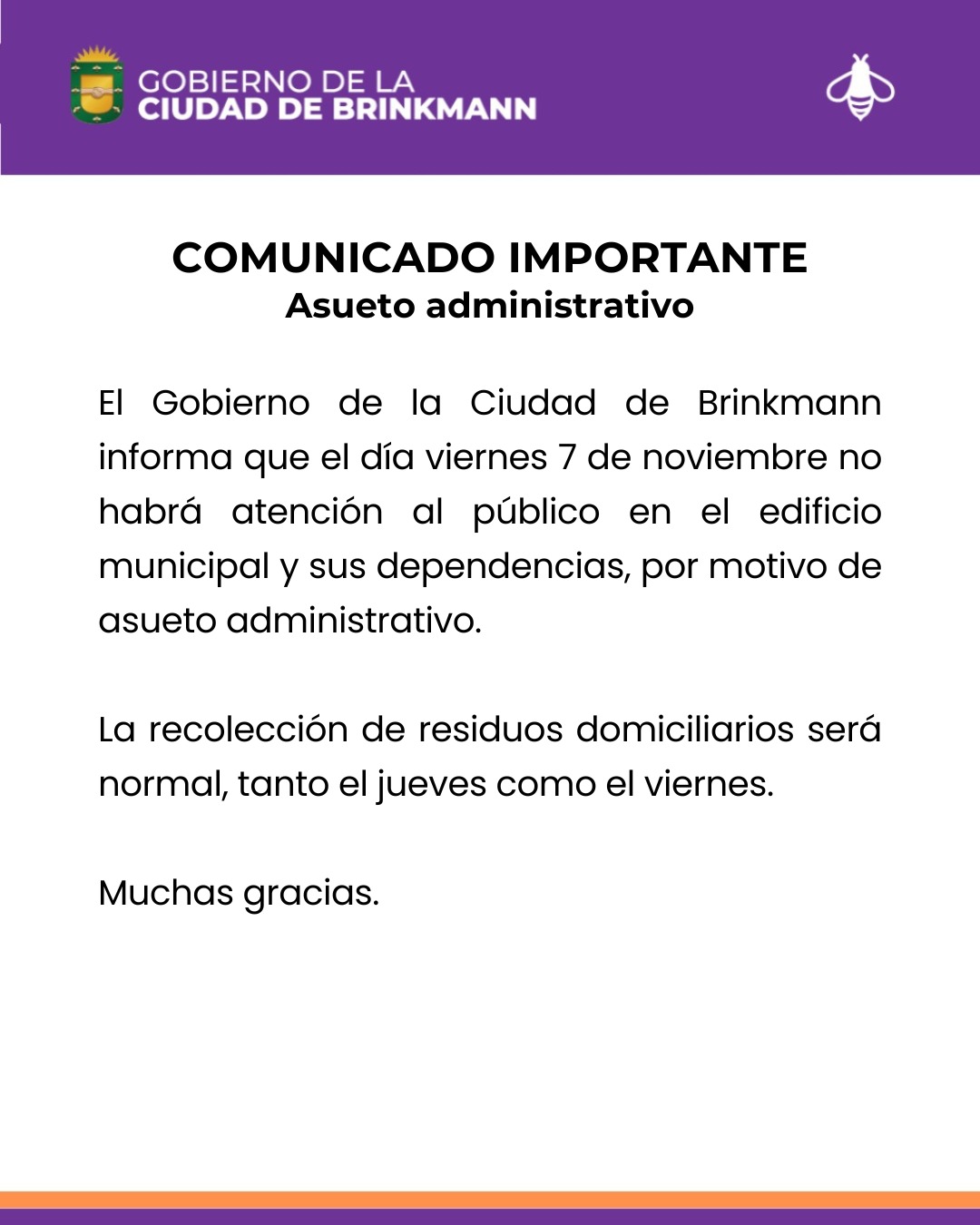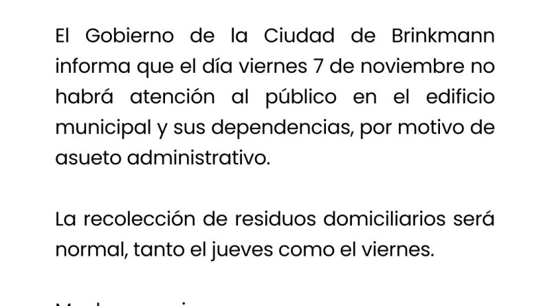 Locales Este viernes asueto administrativo por el «Día del Empleado Municipal» Fabian Amarante 4 noviembre, 2025 ¡Compartir es demostrar interés! Facebook Twitter Pinterest LinkedIn Email Print