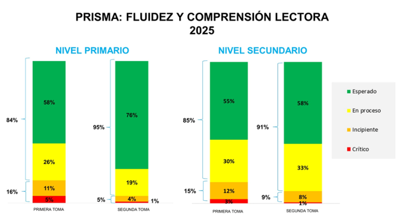 Prisma Fluidez y Comprensión lectora es una evaluación que se aplica en dos momentos del año (mayo y octubre) y pone énfasis en la fluidez y la comprensión lectora que contribuye con una mirada integral sobre las prácticas de lectura. La Primera toma (mayo 2025) brindó la posibilidad de reflexionar sobre la enseñanza y el aprendizaje de la lectura en voz alta, habilitando el diseño e implementación de estrategias diversificadas y basadas en evidencia.