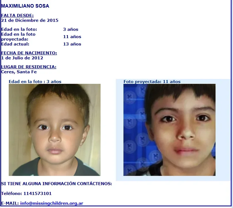 Se cumplen 10 años de la desaparición del niño Maximiliano Sosa en Ceres