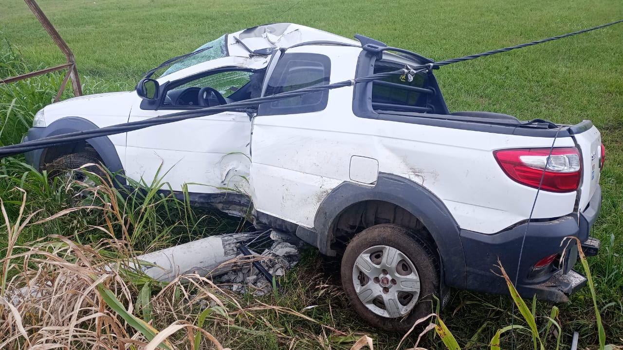 Por causas que se tratan de establecer, una camioneta Fiat Strada que circulaba de sur a norte se despistó en la intersección de Intendente Bria y Jacarandá. El vehículo recorrió aproximadamente 50 metros por la banquina izquierda, regresó a la carpeta asfáltica, terminando en la banquina derecha, donde impactó lateralmente contra un poste de energía eléctrica.
