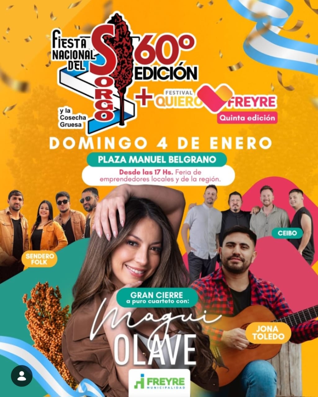 Se viene 60° Fiesta Nacional del Sorgo y 5° Festival » Quiero Freyre» Próximo Domingo 4 de Enero 2026.