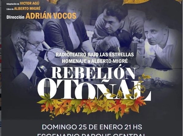 El domingo 25 de enero a las 21 hs en el Escenario Parque Central, llega Rebelión Otoñal, un emotivo radioteatro homenaje a Alberto Migré, con dirección de Adrián Vocos @adrianvocos