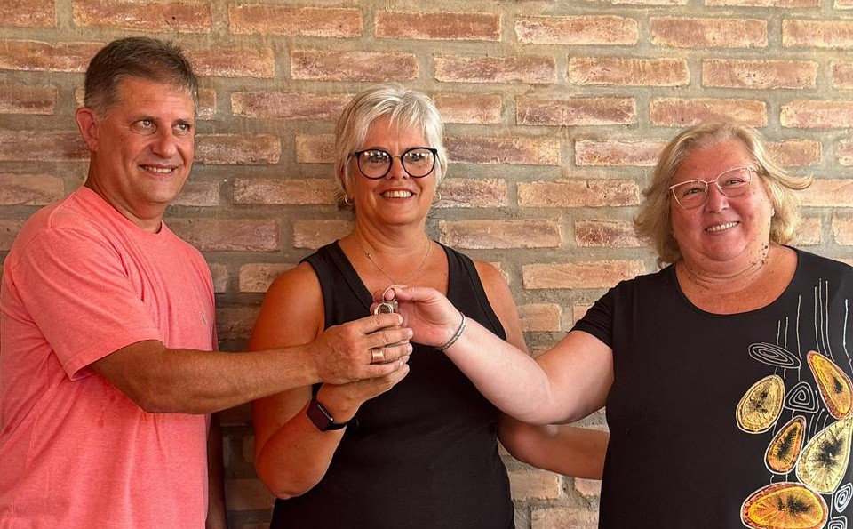 Seguidamente se procedió a la entrega de llaves de la flamante vivienda, labor que se asignó a la secretaria de la entidad, Beatríz Varesio.