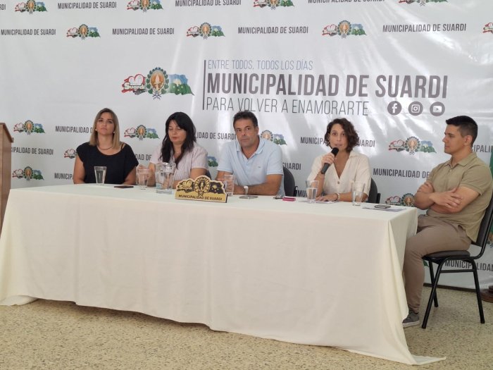 Durante un conferencia realizará en el municipio, se dieron a conocer detalles de la organización del evento que tendrá lugar este domingo 1° con la presentación de la Euge Quevedo. Estuvieron presentes el Intendente, Leandro Gastaldi, la Secretaria de Cultura y Educación, Lía Ferrero, el Secretario de Gobierno, Alejandro Bianco, la Secretaria de Economía, Jimena Lingua y la concejal Ingrid Acastello.
