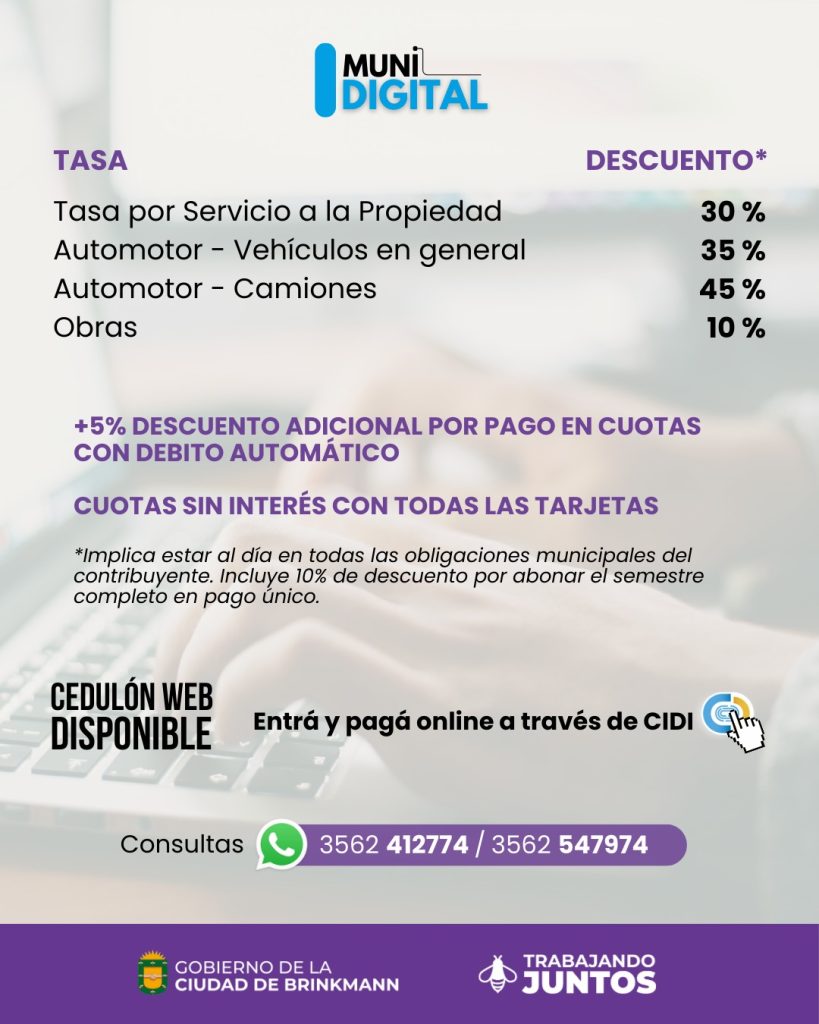 Este viernes 27 es la fecha del vencimiento de tasas municipales 2026, una oportunidad de abonar, estar al día y aprovechar descuentos de hasta el 40%. El Subsecretario de Administración y Finanzas del Municipio Federico Favot destacó que “la recaudación se mantiene en buenos niveles y estable superando el 60% a la fecha de los vencimientos”.