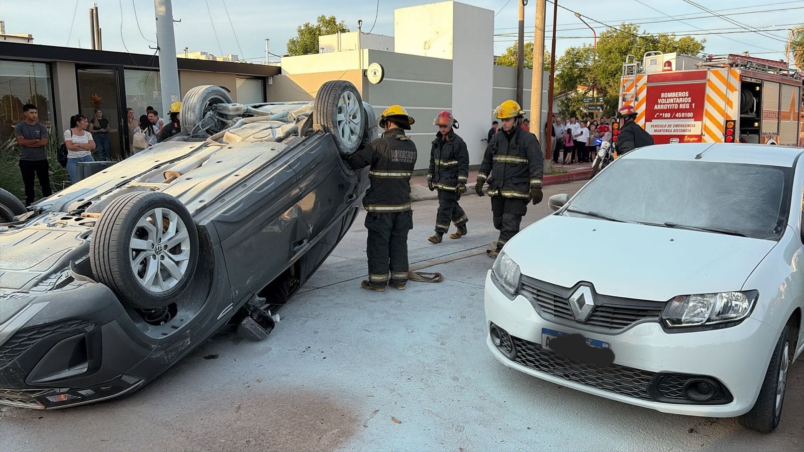 Se trata de una camioneta Volkswagen Taos, color gris, conducida por una femenina de 76 años quien circulaba por calle General Paz en sentido este-oeste y, al cruzar Av. Pontin, por causas que se tratan de establecer, colisiona con dos vehículos que se encontraban estacionados sobre la banquina sur de General Paz, provocando el vuelco del rodado.