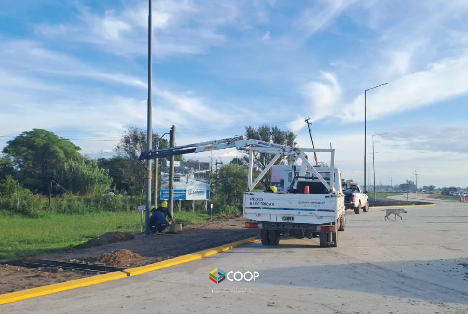 En el transcurso de la semana, la Cooperativa comenzó con la colocación de 12 columnas con las correspondientes bases y cableado; como así también las luminarias led de 200 watts en el sector del cruce de rutas 1 y 17 en la obra de la nueva rotonda vial que lleva adelante la provincia.