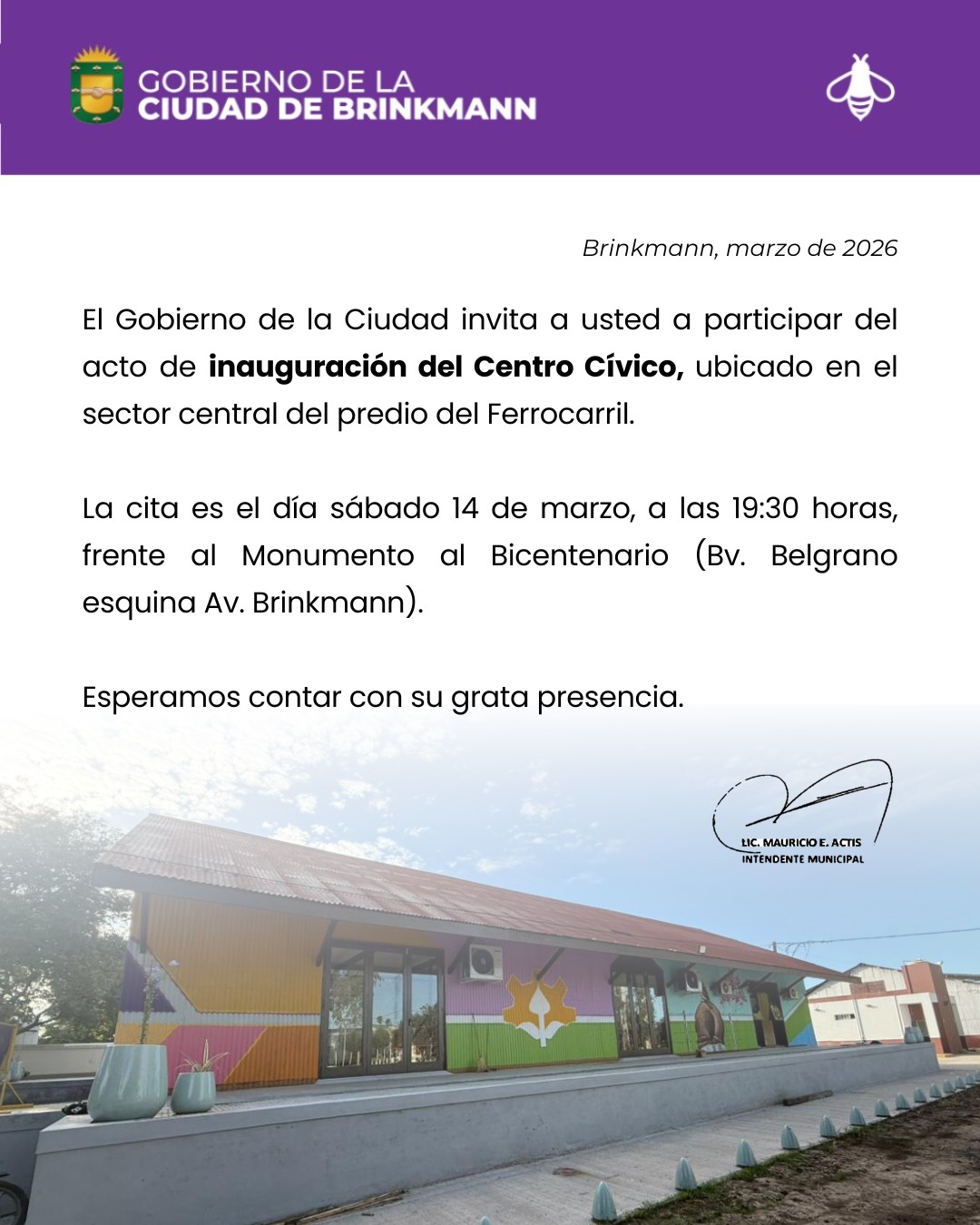 Locales El sábado inauguran el Centro Civico, el nuevo SUM y la nueva sala de sesiones del Concejo Deliberante Franco Musso 10 marzo, 202610 marzo, 2026 ¡Compartir es demostrar interés! Facebook Twitter Pinterest LinkedIn Email Print Será el sábado desde las 19,30 horas en el sector central del predio del ferrocarril.